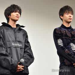 俳優の志尊淳と竹内涼真が31日、都内にて行われた映画『走れ!T校バスケット部』(11月3日公開)公開直前!ユニフォーム限定試写会に出席した。