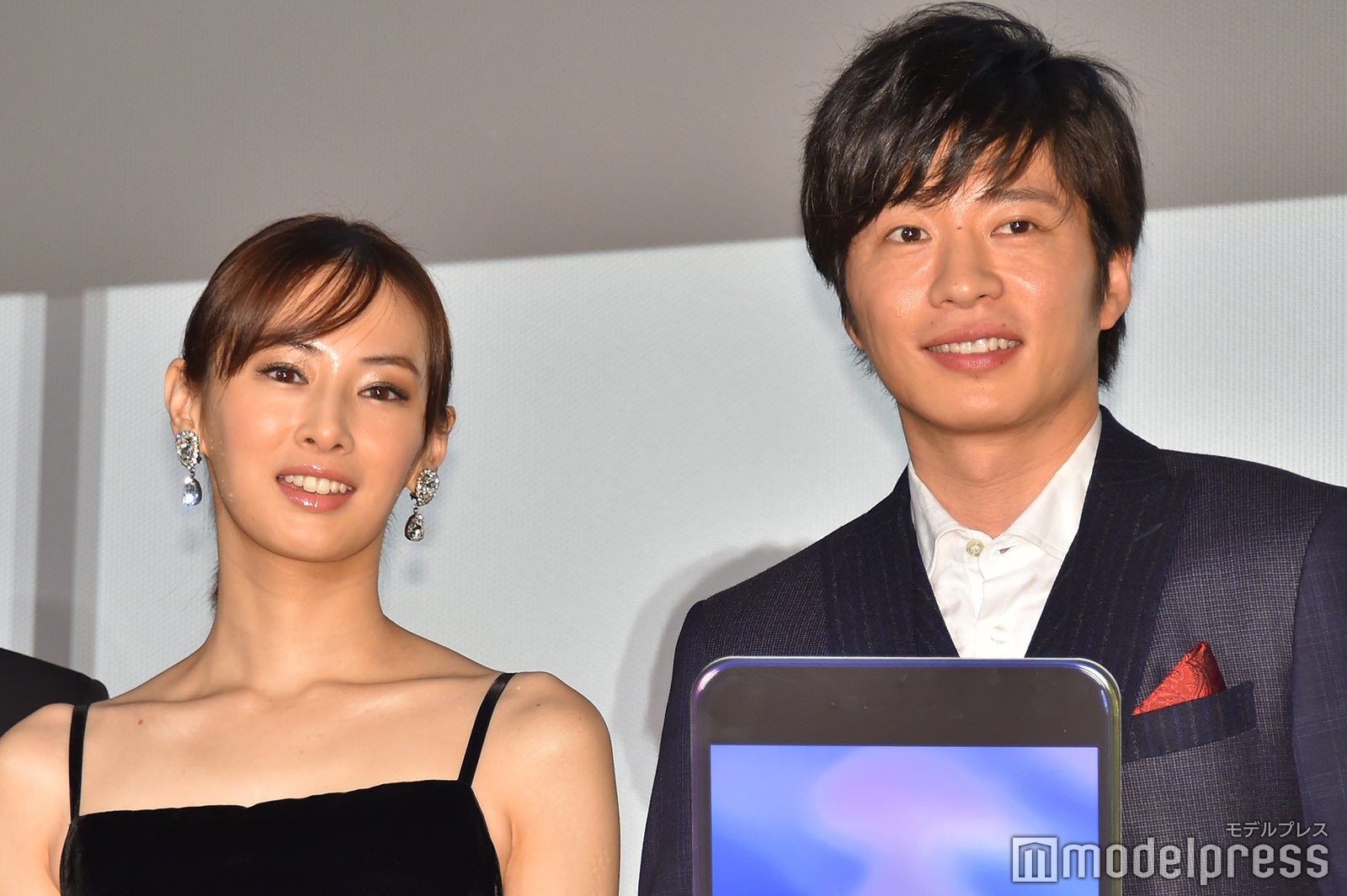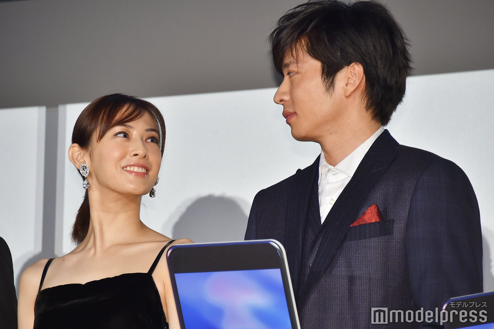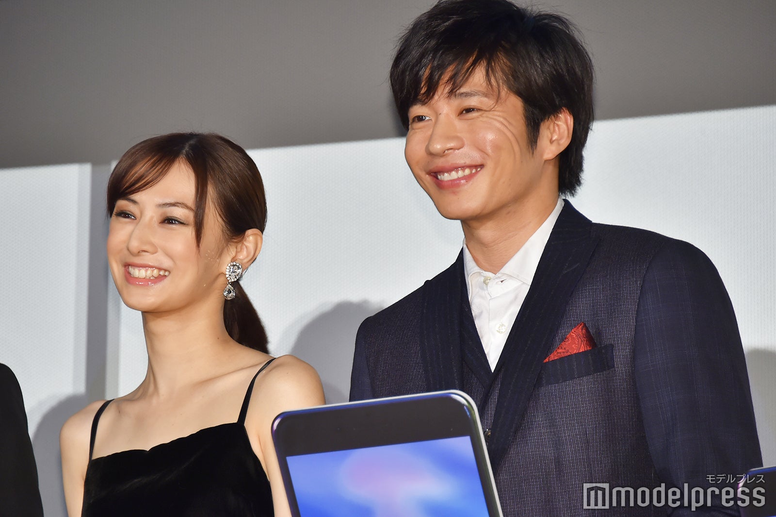 そして田中は挙動不審になりながら近づいて笑いを誘い、「今回初共演で、カップル役ということで、景子ちゃんがすごく素敵な女性だったので、一緒にいる時間はすごく幸せでした。そして撮影が終わってからもいろいろな番宣でご一緒する時に、本当にいろいろフォローしていただいて。そんなトータルの北川景子に一言」と北川に歩み寄って、バックスクリーンに手を添え“壁ドン”。