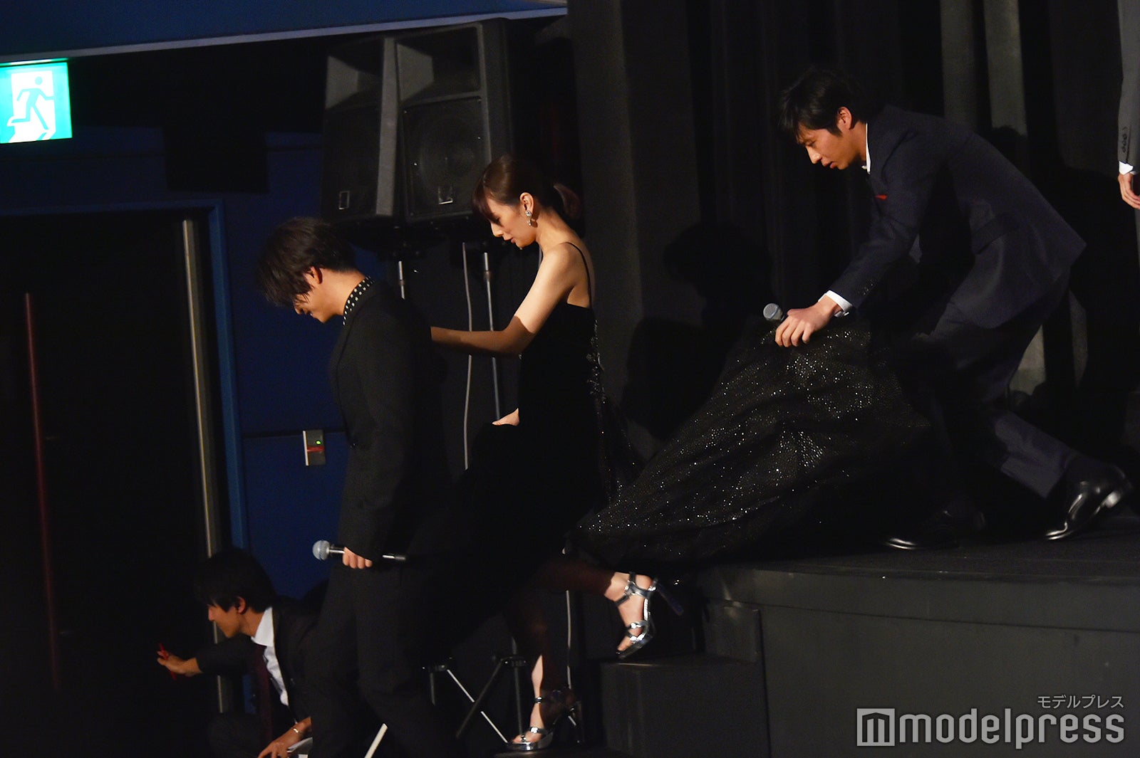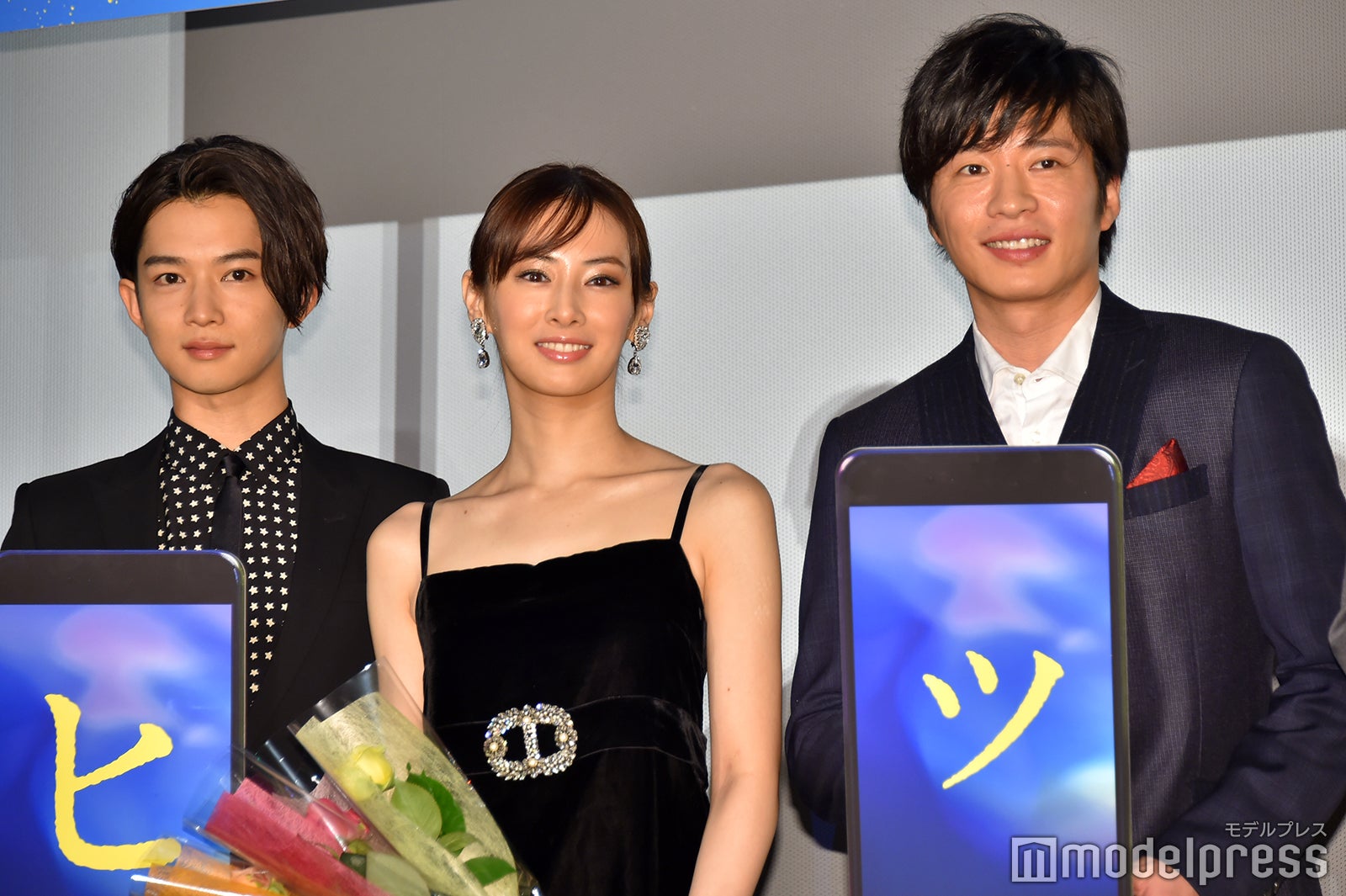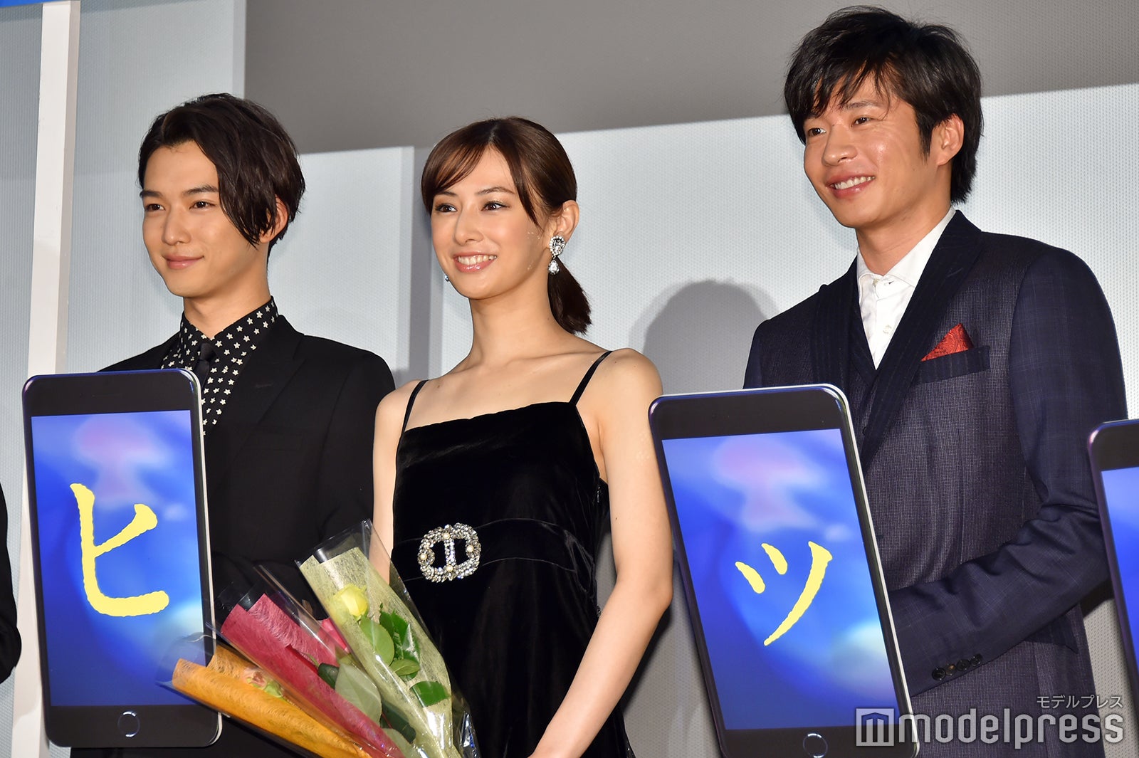 そして田中は挙動不審になりながら近づいて笑いを誘い、「今回初共演で、カップル役ということで、景子ちゃんがすごく素敵な女性だったので、一緒にいる時間はすごく幸せでした。そして撮影が終わってからもいろいろな番宣でご一緒する時に、本当にいろいろフォローしていただいて。そんなトータルの北川景子に一言」と北川に歩み寄って、バックスクリーンに手を添え“壁ドン”。