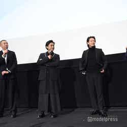 俳優の山田孝之と佐藤健が23日、都内で行われた映画「ハード・コア」公開初日舞台あいさつに、俳優の荒川良々、山下敦弘監督とともに登壇した。