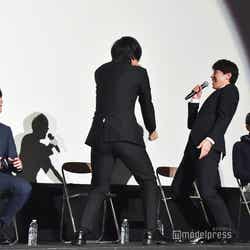 また、就職活動を描いた同作にちなみ、就職活動をしたことがないという荒牧は、オーディションや面接などで心に残っていることを聞かれると「それこそオーディションもそこまで受けたことがないんですけど、1番最初に受けた舞台のオーディションでは、印象を残したいと思ってジュラ刀(アルミ刀)を持っていって、面接されている方の前で剣舞をしたりしました」と告白し、MCから「剣舞を披露して」と無茶振りされると「いやいやいや(笑)」と大焦りをしつつも、富田相手に「えいっ!」とエアーで一振りし、会場を沸かせた。