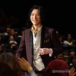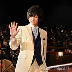 同作は、これまでに、アニメ・ミュージカル・舞台など様々なメディアミックスを成功させてきた人気コンテンツ「刀剣乱舞-ONLINE-」の初の実写映画化作品で、原案は、名だたる刀剣が戦士へと姿を変えた“刀剣男士”を率い、歴史を守るために戦う刀剣育成シミュレーションゲーム。同作にとって初のイベントとなったこの日、劇中に登場する“刀剣男子”がタキシード姿で集結し、1人ずつ、映画館の客席通路に敷かれたレッドカーペットの上を歩いてステージに上がった。