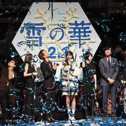 三代目 J SOUL BROTHERS from EXILE TRIBEの登坂広臣と女優でモデルの中条あやみが24日、都内にて行われた映画『雪の華』(2月1日公開)のジャパンプレミアに共演の高岡早紀、浜野謙太、田辺誠一をはじめ、橋本光二郎監督、主題歌「雪の華」を歌うアーティストの中島美嘉とともに登壇した。