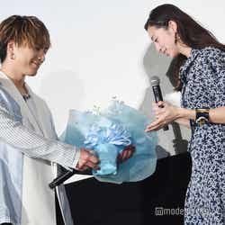 今作は、冬ラブソングの名曲、中島の「雪の華」を、東京とフィンランドを舞台に映画化したオリジナルストーリー。自身が演じた役との共通点を問われたところで、登坂がいきなり無言でステージから降壇。慌てる中条のもとに登坂が花束を抱えて再登場し、「誕生日おめでとう!」と4日に22歳の誕生日を迎える中条をサプライズで祝福した。