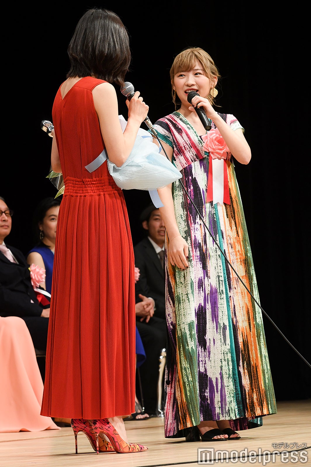 助演女優賞は、『万引き家族』『blank 13』『ちはやふる -結び-』の松岡茉優、『寝ても覚めても』『榎田貿易堂』の伊藤沙莉。子役時代から親交が続く親友2人は、それぞれのスピーチの後、並んでステージ上に立った。2人はドラマ「その『おこだわり』、俺にもくれよ!!」(テレビ東京系)で共演した時から、助演女優賞を揃って受賞することを夢見ていたことを打ち明け、「予想としては35(歳)過ぎてぐらいからかなと思っていたんですけど(笑)。ちょっと早かったかな(笑)」と嬉しい誤差に微笑んだ松岡。MCから「主演女優賞でも…?」と振られると、「そっちも頑張ります」(松岡)、「そうですね、夢は大きい方がいいですから」(伊藤)と意欲をのぞかせた。