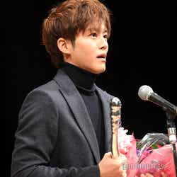 『孤狼の血』での受賞となった松坂は、「ヨコハマ映画祭」の助演男優賞を2年連続で獲得。昨年も『彼女がその名を知らない鳥たち』ということで、「白石(和彌)監督じゃないと来れないのかな(笑)」と笑い飛ばし、「2年連続の受賞、30代最高のスタートが切れたのでは?」と聞かれると、「まだまだ自分がこの仕事を続けていく上で、もっとやらなきゃいけないことがたくさんありますし、『孤狼の血』を含めて自分の中では課題が見えてきた年でもあったので、それを踏まえて30代は、40代に向けてしっかりやっていこうと思っています」とさらなる活躍を誓った。“ヘンリー五世”髪型をツッコまれる