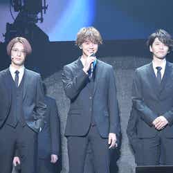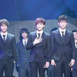 ライブ後には、片寄、鈴木ら16名のキャスト陣が再び舞台へ。鈴木は京極兄弟での歌唱について「初めて京極兄弟として歌わせていただいて、壱馬と皆さんのおかげです」と感謝。これに“弟”川村は「兄貴(鈴木)が歌でサプライズしたり、ライブ全体を通して皆さんに喜んでいただけて、兄貴にも喜んでもらえて最高」と笑顔を浮かべた。一方、映画で注目の王子を聞かれた佐野は「北ちゃん」と吉野の名前を挙げ、「リアルに出てたよね、北ちゃんのピュアさが」とべた褒め。そして、同じ質問に「大学の同級生」である町田と答えたメンディーは、「壁ドンのときの間がエロかった」と具体的な感想を述べ、町田がメンディー相手に“エロい壁ドン”を再現する一幕もあった。
