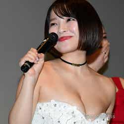 一方、白のミニドレスで登壇した天木は、ファンで埋め尽くされた会場を見渡すと「こんなにたくさんご来場くださり、本当にありがとうございます。とっても胸がいっぱいで、胸が大きくなっちゃったあ!」と谷間をアピール。無数のフラッシュに満足げな表情を見せると「映画の中では、ぼいんって出しているシーンはないので、ちょっとここでサービスしました!」と白い歯を見せた。