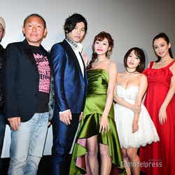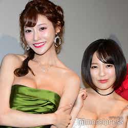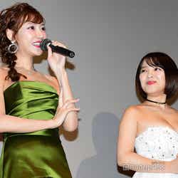 女優の明日花キララ、グラビアアイドルの天木じゅんが16日、都内で開催された映画『アイアンガール FINAL WARS』の初日舞台あいさつに出席。胸元が強調されたセクシーなドレス姿を披露した。