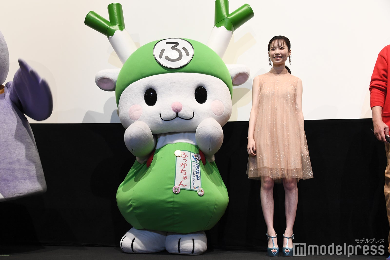 女優の二階堂ふみが5日、都内で行われた主演映画『翔んで埼玉』大ヒット舞台挨拶に、埼玉出身のキャストである島崎遥香、ブラサートム、武内英樹監督、劇中に登場するご当地キャラクターのコバトン(埼玉県)、ふっかちゃん(深谷市)らとともに登壇した。