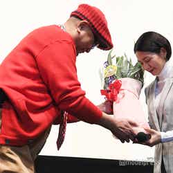 “男役”ということで、今作のイベントでは毎回パンツ姿で登壇している二階堂だが、この日はショートパンツで美脚を披露。「まさか!この映画が大ヒットするとは、ちょっと嘘なのかなと思っていたんですけど、いろいろな方から反響をいただいておりまして、すごく嬉しいです」と大ヒットに喜びをあらわにし、「せっかくなので730万人の埼玉の方全員に観ていただけるように」と改めて意気込み。ブラザートムからは「埼玉ばっかりじゃなくてもいいんだよ」とツッコミが。