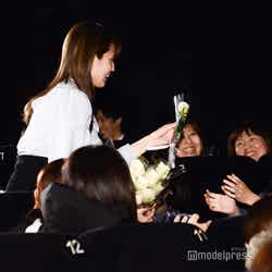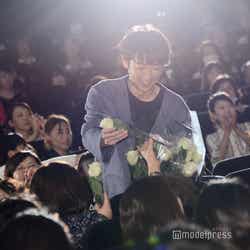 高橋と川口は入場時、ホワイトデーも近いこともあり、来場者へ感謝の気持ちを込めホワイトデーのプレゼントとして“白いバラ”を手渡し。2人ともファンと交流しながら会場を回ると、川口は一足先に配り終えステージへ。一方の高橋は、予定にないルートも回り、少し遅れてステージに到着した。「お待たせいたしました」とステージに上がった高橋は、「本当の本当にサプライズにしようかと思っていたんですけど、(事前に登場場所の告知があったため)サプライズにはならなかったんですけど(笑)」と少し残念そうにしつつ、映画上映後の舞台挨拶ということで「観終わった後の皆さんのお顔を拝見していると、皆さん本当に感動してくださったんだなと」と観客の反応に喜び。