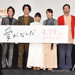 女優の深川麻衣が12日、都内で行われた映画「愛がなんだ」(4月19日より公開)の完成披露上映会に、主演の岸井ゆきの、共演の成田凌、若葉竜也、メガホンをとった今泉力哉監督とともに登壇した。