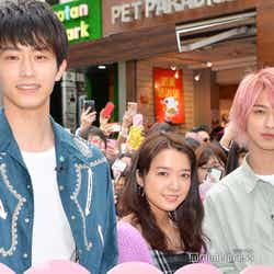 この日、原宿のメインストリートである竹下通りに3人がサプライズ登場すると、買い物に来ていた女子中高生らが絶叫。「かっこいい!やばい!」「可愛い!」と大歓声に包まれるなか、3人は竹下通りを約100メートルを練り歩いた。