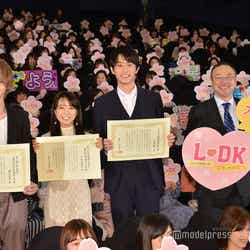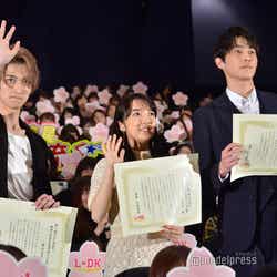 女優の上白石萌音、俳優の杉野遥亮、横浜流星が2日、映画『L・DK ひとつ屋根の下、「スキ」がふたつ。』(・はハートマーク)の大ヒット舞台挨拶に、川村泰祐監督とともに登壇した。