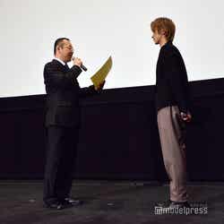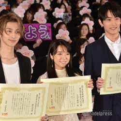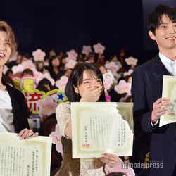 その後、キャストにサプライズがあることが明かされると、杉野は驚いた表情で「そんなことあるのかな?って考えてたんだけど、全然台本にもそんなこと書いてないし…ちょっと鳥肌立っちゃった」と身震い。川村監督から3人への“サプライズ表彰式”が行われた。横浜には「振り幅の広い演技で繊細な玲苑を見事に演じたで賞。横浜流星殿。あなたは本作において、今まであった壁ドンを超えるハイブリッド壁ドンだけでなく、不器用な玲苑の愛情表現などを振り幅広く繊細に演じ、全国の女子をギャップ萌えさせてくれました。本当にあなたが玲苑で良かったです。ここに感謝の気持ちを込めて、この表彰状を送ります」と表彰。横浜が「ありがとうございます、嬉しいです。監督からそういったお言葉をいただけるのは本当に嬉しいですね…嬉しいです」と喜びを噛みしめると、川村監督は「泣くなよ」と返して会場を笑いの渦に。