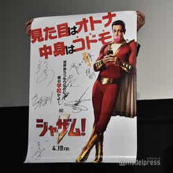 ナゾすぎる魔術師からスーパーパワーを授かったものの、パワーのムダ遣いをしていたイマドキの悪ガキ、ビリー・バットソンが、ある日、ナゾすぎる科学者Dr.シヴァナにパワーと悪ガキ仲間のフレディを奪われ、“遊んでいる場合じゃないんじゃね?”と改心し、ヒーローらしく敵に立ち立ち向かっていく姿を描く同作。主人公のビリーがパワーを使って変身した姿であるシャザムの声を演じる菅田は、同役のオファーがあった際の心境を尋ねられると「びっくりしました。ついこの間ですもん、オファーが来たの」と打ち明け、「その頃には予告が普通にテレビCMでも流れていて、“うわぁ、DCコミックだ!新しいヒーローだ!”と思いつつ、予告が面白かったので“観に行こう”と思った2日後くらいにオファーが来て、“えっ?まだ録ってないの?”って」と回顧。