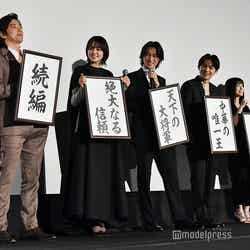 作品のテーマにちなみ「夢」を発表する場面では山崎が「天下の大将軍」と信の想いを継ぎ「このままずっと信を生き続けたい。天下の大将軍になるまでやりたいと思います。俳優としても高みに行きたいなという思いを込めて」と発表すると、吉沢も「中華の唯一王」と続き「賢人と全く一緒!中華の唯一王になるまでこの作品を続けたい」と息ぴったり。さらに大沢、橋本、本郷の3人は共に「続編」を夢に掲げ、これには佐藤監督も「今なんとなく直感で(続編が)できる!と思っている。近々の夢として持っていきたい」と意欲を述べていた。(modelpress編集部)