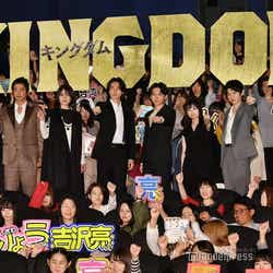映画『キングダム』の初日舞台挨拶が19日、都内で行われ、主演をつとめる山崎賢人(※「崎」は正式には「たつさき」)をはじめ吉沢亮、長澤まさみ、橋本環奈、本郷奏多、大沢たかおらキャスト陣と佐藤信介監督が登壇した。