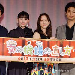 女優の早見あかりと松井玲奈が20日、沖縄県で開催中の「島ぜんぶでおーきな祭 第11回沖縄国際映画祭」で上映された映画「女の機嫌の直し方」(6月15日公開)の舞台挨拶に共演の平岡祐太、佐伯大地、有田駿介監督とともに登壇した。