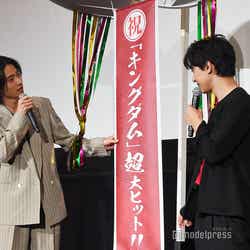 19日に公開された同作は27日までの9日間で100万人を動員、興行収入が14億を突破する大ヒットスタートを記録。くす玉を割った山崎と吉沢は「すげー!」と口を揃え、山崎は「本当にたくさんの人からメッセージをもらって、反響がすごい。『心震えました』と言われたり、原作が好きな人も『信だった』と言ってくれて」と高い評価に歓喜。