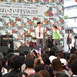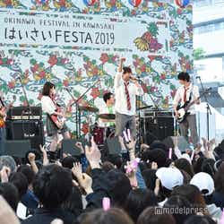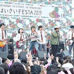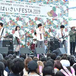 本作は、平成でもっとも歌われた男性アーティストによるカラオケランキング1位に輝いたMONGOL800の名曲『小さな恋のうた』から生まれたもので、幾度となく沖縄で取材を重ね、8年にも及ぶ歳月をかけて完成した物語。MONGOL800の楽曲の数々に込められた知られざるメッセージを導き出し、2つの国とともに生きる若者たちの“生きた青春”を描く。4月4日に行われた沖縄プレミアにて、楽曲の生みの親であるMONGOL800のお墨付きを受けて、本作のメインキャストである佐野、森永、山田、眞栄田、鈴木の5人が“小さな恋のうたバンド”としてメジャーデビューすることが発表され、今回、神奈川県川崎市で行われた全国最大級の沖縄の祭典『はいさい FESTA2019』に出演。半年以上のトレーニングを経て演奏に挑み、『小さな恋のうた』をはじめ劇中で使用されたMONGOL800の名曲たちを生披露した。