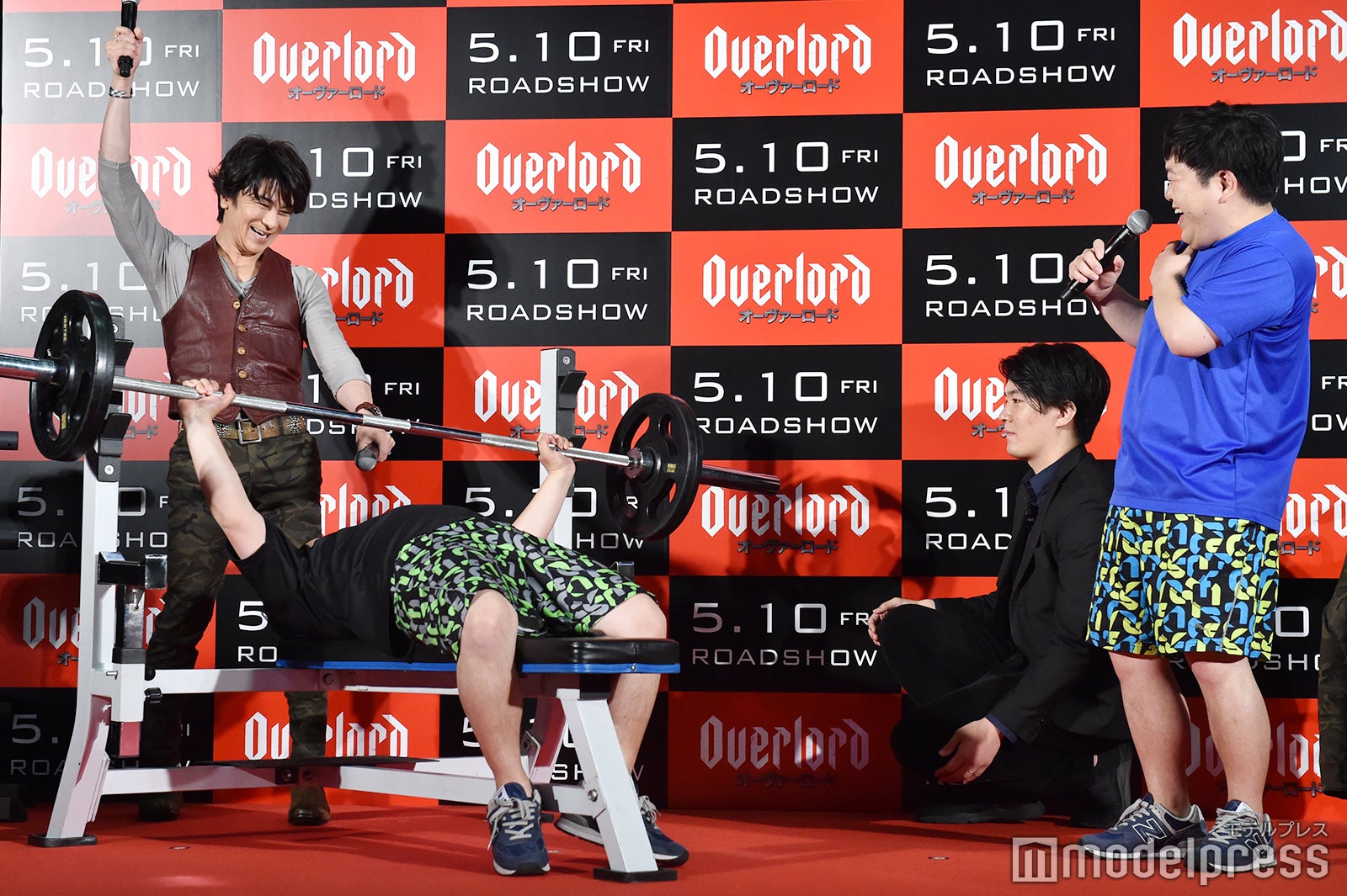 俳優の武田真治が8日、都内で行われた映画「オーヴァーロード」(5月10日公開)の公開直前イベントに、お笑いコンビのザ・たっち(たくや、かずや)とともに出席した。
