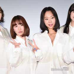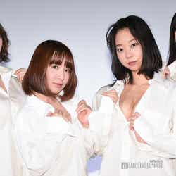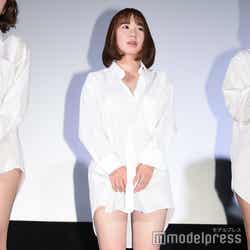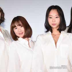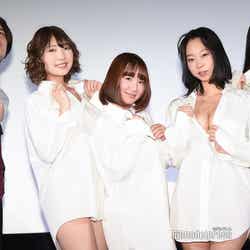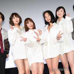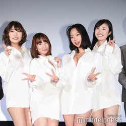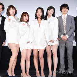 そして、フォトセッション時には女性陣が劇中衣装から着替えてSEXYな白シャツ姿で登場。前回の舞台挨拶でも女性陣が水着姿で写真撮影に応じたため、あまり映らなかったと愚痴をこぼしていた石田が、今回の撮影では女性たちに負けじとジャケットをはだけさせ、全力でポーズをきめていた。(modelpress編集部)