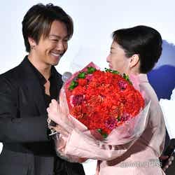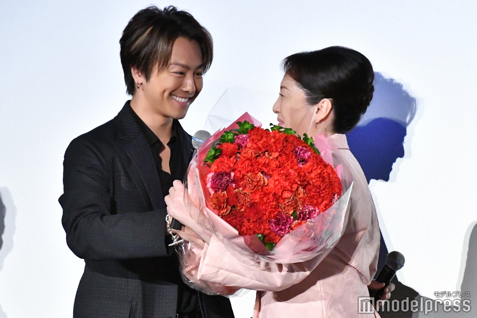 さらにイベントでは、そんなTAKAHIROが、劇中で母親役を演じた松坂に、翌日12日の「母の日」にちなんで、赤いカーネーションの花束をサプライズでプレゼント。TAKAHIROに「これからも、『お母さん』と呼ばせてください」と告げながら花束を渡された松坂は「よろこんで」と満面の笑みを浮かべながらハグ。「びっくりしました。どうも、ありがとうございます」と感動ひとしおの様子で、「徹からというより、TAKAHIROさんからのカーネーションですね、このアレンジは。すごい!」と感激していた。