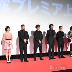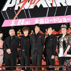 映画『プロメア』(5月24日公開)の完成舞台あいさつが15日、都内にて行われ、声優を務めた松山ケンイチ、早乙女太一、堺雅人、ケンドーコバヤシ、古田新太、佐倉綾音、脚本の中島かずき氏、今石洋之監督が登壇した。