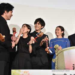 映画『居眠り磐音』の初日舞台挨拶が17日、都内で行われ、主演の松坂桃李、共演の木村文乃、芳根京子、柄本佑、杉野遥亮、石丸謙二郎、谷原章介、メガホンをとった本木克英監督が登壇した。