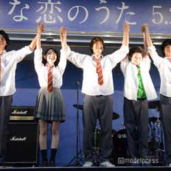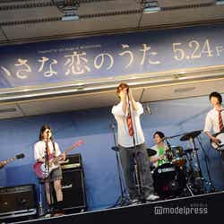 映画『小さな恋のうた』公開前夜祭イベントが23日に都内で開催され、主演の佐野勇斗、共演の森永悠希、山田杏奈、眞栄田郷敦、鈴木仁らによる「小さな恋のうたバンド」(通称:ちい恋バンド)がフリーライブを行った。