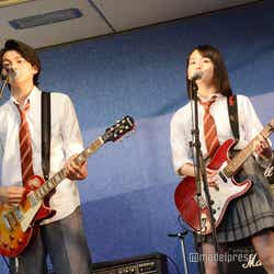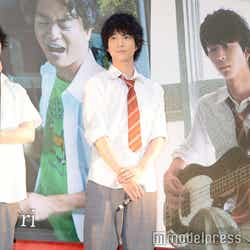 山田は、「本物のバンド感というか、バンド内の絆は成長したと思います」と笑顔を見せ、「劇中でも、『このバンドを応援したいな』と思ってもらえるような演奏ができていると思います」と自信をのぞかせた。同作で役者デビューした眞栄田は、今後も役者を続ける覚悟を決めたそうで、その理由として、「この作品、キャスト、スタッフと出会えたから。ゼロからのスタートだったので成長しかなく、演技も楽器もいろんなことを学ばせていただきました」としみじみと語った。鈴木は「小っちゃい頃から音楽に対して苦手意識があって、この世界に入った時に音楽だけはやらないと思っていたけど、この作品に出会えて、ベースを弾くことになって、一から音楽を好きになれました。この作品に出会えて自分が変われたし、新しい一歩を踏み出せたんじゃないかな」と嬉しさをにじませた。