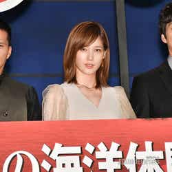 登場してすぐの挨拶、トップバッターの西島は「こんばん…(笑)。“こんばんは”じゃないや、こんにちは(笑)」と時間帯を間違えてまうアクシデントに照れ笑い。司会から「キュートな一面」とフォローされる中、「本当に今すごく緊張していて、この傑作の『空母いぶき』を実写映画化するということで、(クランク)イン前、撮影中も緊張していました。スタッフ・キャスト毎日魂を込めて撮影をしました。ようやく初日を迎えることができて、緊張で“こんばんは”と言ってしまいました」と同作にかける思いの強さからきた“可愛いらしい間違い”をしてしまったことを打ち明けた。