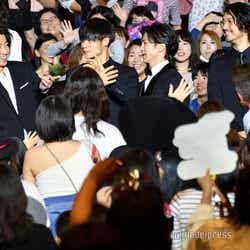 藤原×実花監督の初タッグが実現した今作。蜷川幸雄さん演出によって芸能界デビューを果たし“まな弟子”として数多くの作品に出演し続けてきた藤原は、娘である実花監督作品で主演を務めること関し「実花さんに『竜也やろう』って言われたら、断る理由って何一つ見つからない」と力強く語り、「撮影は大変だったんですけれども、何か感慨深いというか、妙な縁を感じるというか。非常に僕の人生にとって貴重な時間を過ごさせていただきました」としみじみ。一方、実花監督は藤原とのタッグについて「竜也と一緒にできたっていうのは、とってもとっても大きなことで、一緒にできて嬉しかったです」と感激した様子を見せる場面も。