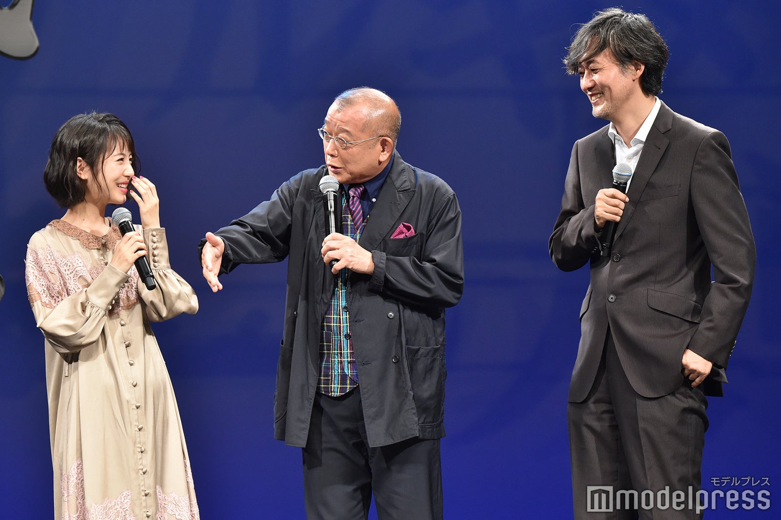 櫂に想いを寄せる造船会社の社長令嬢・尾崎鏡子役を演じる浜辺は、初の山崎組だったそうで、現場の様子を聞かれると「山崎監督はどういう方か知らなかったので、名前だけ聞いていたら大監督でドワーンって感じかなと思ったら、現場のお父さんみたいな感じで、本当に穏やかで、笑顔を絶やさない方だったんですよ」と表現し、「なので緊張もそんなにしなかったのでよかったです。本当に優しい監督でよかったです」とニッコリ。撮影現場での菅田との交流について尋ねられると、浜辺は「しりとりをした思い出がすごくあります」と明かし、菅田は「しりとりしました!負けた人はくすぐられるっていうのをやって、ずっと鶴瓶さんをくすぐっていました」と回顧。これに浜辺から「しりとり弱かったですよね」と突っ込まれた鶴瓶は「合わせたんや!あのセリフの長いのがあって、なのにここ(脇)ばっかり揉まれて…」と苦笑した。