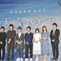 また、醍醐は同作の魅力を聞かれた際、「監督が“エンターテイメント作品”と仰っていた通り、感情の起伏が大きくて泣いたり笑ったりするんですけど、僕は観終わった後にすごく愛について深く考えました。帆高と陽菜の恋愛の物語でもありますけど、僕は家族や友人だったり、身近にいる大切な人をもっと大切に生きようと思うことが出来たので、ただ面白い映画ではなく、そういうことも考える素敵な映画になったと思います」とコメント。続けて、森も「帆高と陽菜が選んだ選択を観た今私たちは“じゃあどうだったらいいんだろう?”って考えさせてくれる映画で、是非多くの人たちに観て欲しい」とアピールした。