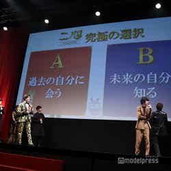 2010年に発売されたRPGシリーズをアニメーション映画化する同作。物語は、現実世界「一ノ国」と命のつながりを持つ魔法世界「二ノ国」が舞台。主人公のユウとその親友のハルが、幼なじみ・コトナを巡る出来事をきっかけに、2つの世界を行き来することになる…という青春ファンタジーを描く。永野は、活発な女子高生“コトナ”と異世界である二ノ国の姫“アーシャ”の2役。役に共感できる部分はあったか?と質問を受けると、アーシャについて「自分が“こうであるべき”と思っている姿と“こうなりたい”と思っている姿があって、その場によって変えるんですけど、その感じは誰でも共感できる部分なんじゃないかなと思って」と持論を展開。