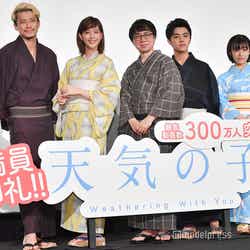 新海監督にとって『君の名は。』(2016)から3年ぶりの新作となった同作は、天候の調和が狂っていく時代に、運命に翻弄される少年と少女が自らの生き方を「選択」する物語。公開から11日目のこの日で、動員300万人、興行収入40億円を突破するほど話題になっており、舞台挨拶には10回以上鑑賞している人もいた。(modelpress編集部)
