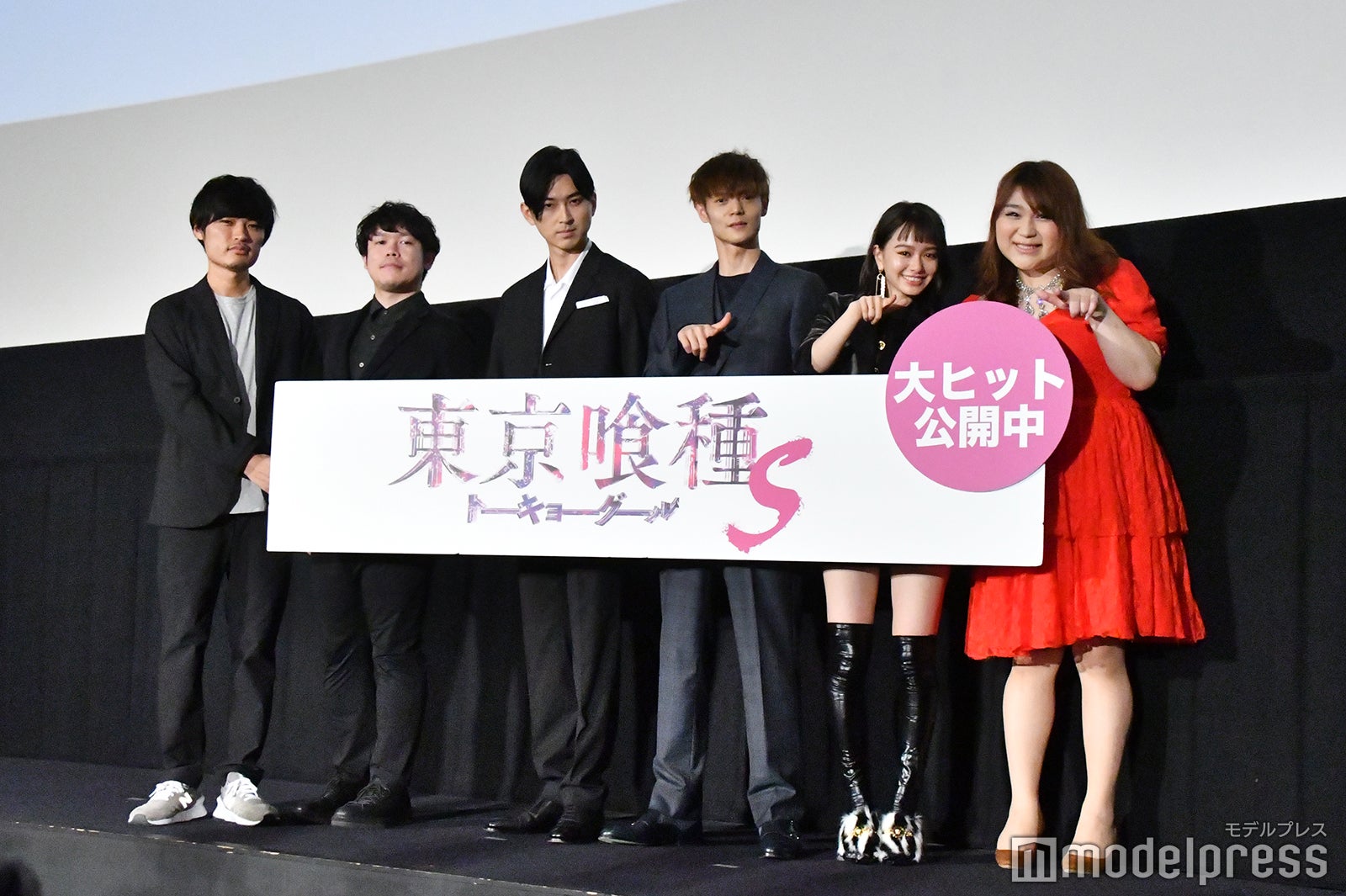俳優の窪田正孝、女優の山本舞香が30日、都内にて開催された映画「東京喰種 トーキョーグール【S】」(公開中)の大ヒット御礼舞台挨拶に、出演の松田翔太、川崎拓也監督、平牧和彦監督、ものまねタレントのりんごちゃんと登壇した。