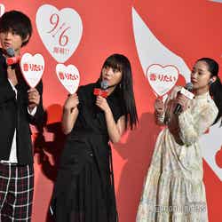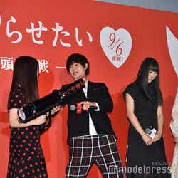 ハート型のクッションボールをバズーカで放ちながら登場した平野と橋本は、今回が初共演だったそうで、お互いの印象を尋ねられると、平野から「お先に行きます?」と振られた橋本は「このまんまです(笑)。お会いする前と、お会いした後、なんら変わらないくらいで、テレビで皆さんが見ている印象と裏でも一緒だったなという感じがありますし、ところどころで天才的な部分を映画の撮影中に近くで感じていました」と平野の印象を語り、MCから「天才…」と声をかけられると、橋本は「基本変わっている…」とポツリ。これに平野から「言い方変えないでよ!天才のままでいいじゃん」と突っ込まれた橋本は「天才にもいろいろ種類があって、変わっているほうの天才」といい、平野も「ありがとうございます」と納得。具体的に天才だと感じた部分を追求された橋本は「(平野が)言い間違えとかもよくするんですけど、撮影している間、自分のセリフを言い間違えると自分で気付くんですけど、この方は全然気付かないので、生徒会メンバー4人シーンが多いんですけど、私たちはそれに気付いているからクスクス笑っちゃうじゃないですか。(でも平野は)カットがかかった瞬間に『なんで笑ってるの?』って」とエピソードを紹介。これに平野は「本当にびっくりしました。僕がセリフを喋っているのに、みんなポカーンとしてるから、“お芝居しないの?”って。後々考えたら僕が悪かったみたいで…」と下を向いた。