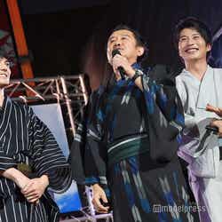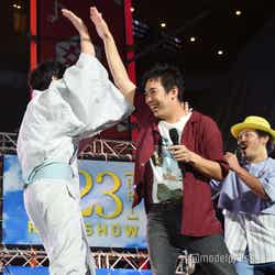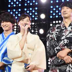 「藍」「Revival」「全力少年」の3曲を披露したライブの後、主演の田中圭をはじめ林遣都、吉田鋼太郎、内田理央、金子大地、伊藤修子、児嶋一哉、沢村一樹、志尊淳、眞島秀和、大塚寧々らキャスト陣と瑠東東一郎監督がサプライズ登壇。会場から割れんばかりの歓声が上がる中、キャスト陣とハイタッチを交わしたスキマスイッチの大橋卓弥は「すごいね!おっさんずラブすごい!」とその熱狂ぶりにビックリ。