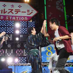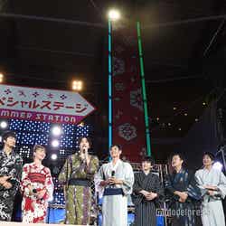 先立って行われたトークイベントを終え、舞台袖でスキマスイッチのライブを鑑賞していたキャスト陣。ライブの感想を聞かれた田中は「もう最高ですよね。やっぱりスキマさんとおっさんずラブは共に歩んできましたので」と感慨深げにコメント。また「僕ずっと歌ってましたからね。遣都のモノマネして」と舞台袖での様子を明かし、観客を沸かせた。