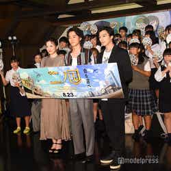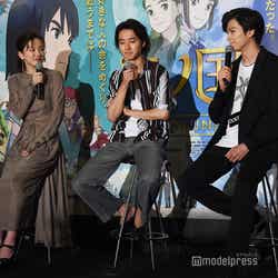 女優の永野芽郁が14日、都内で行われた映画『二ノ国』(8月23日公開)の公開直前夏休みイベントに、俳優の山崎賢人(※「崎」は正式には「たつさき」)、新田真剣佑とともに出席した。