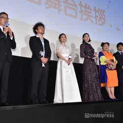 映画『ダンスウィズミー』の初日舞台挨拶が16日、都内で行われ、主演の三吉彩花、共演のやしろ優、chay、三浦貴大、ムロツヨシ、宝田明、メガホンをとった矢口史靖監督が登壇した。