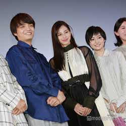 モデルで女優の中条あやみが23日、都内にて行われた主演映画『正しいバスの見分けかた』初日舞台挨拶に岡山天音、萩原みのり、葉山奨之、高橋名月監督とともに出席した。