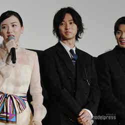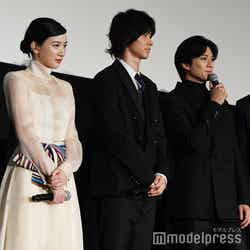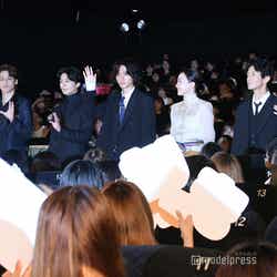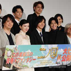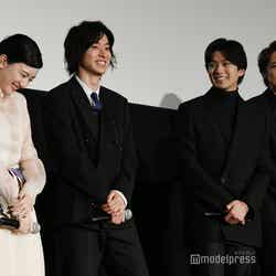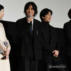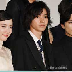 俳優の山崎賢人(※「崎」は正式には「たつさき」)と新田真剣佑が24日、都内で行われた映画『二ノ国』(公開中)の公開記念舞台挨拶に、女優の永野芽郁らとともに出席した。