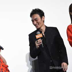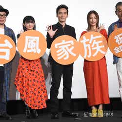 草なぎ剛が14日、都内で行われた主演映画「台風家族」の生中継舞台あいさつに、共演のMEGUMI、甲田まひる、藤竜也、メガホンをとった市井昌秀監督とともに登壇した。