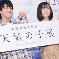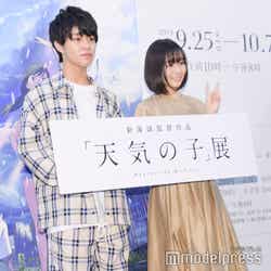 新海誠監督の最新作『天気の子』(公開中)で声優を務めた醍醐虎汰朗、森七菜が25日、都内で行われた「天気の子展」(東京・松屋銀座/9月25日~10月7日)オープニングイベントに出席した。