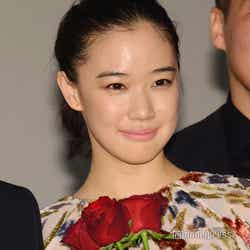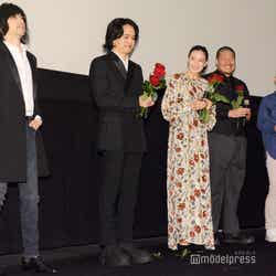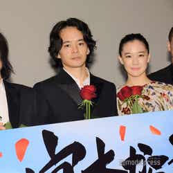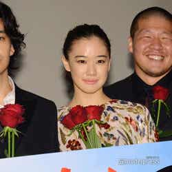女優の蒼井優が28日、都内で行われた映画『宮本から君へ』(9月27日公開)の公開記念舞台挨拶に、主演の池松壮亮をはじめ、共演の一ノ瀬ワタル、真利子哲也監督、原作の新井英樹、主題歌を書き下ろした宮本浩次とともに登壇した。